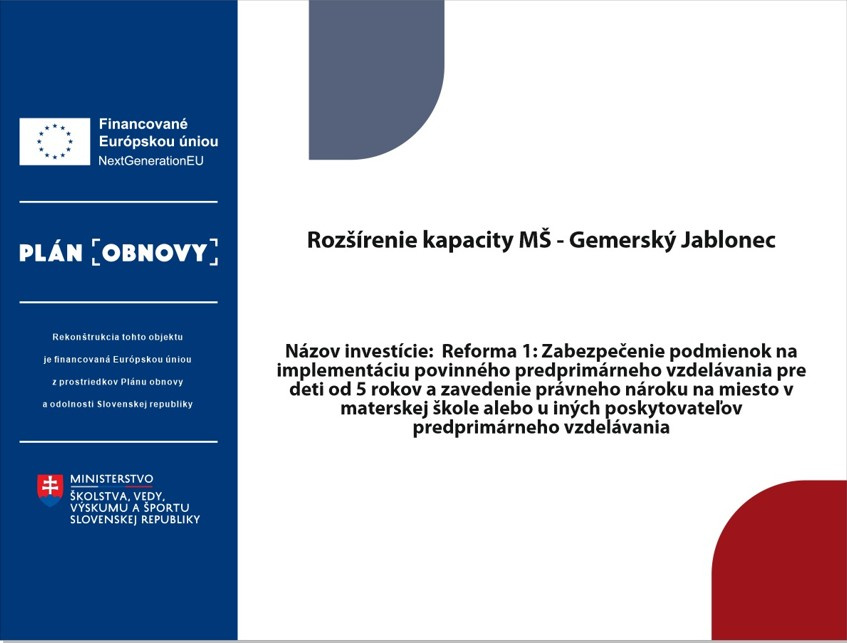 Rozšírenie kapacity MŠ Gemerský Jablonec