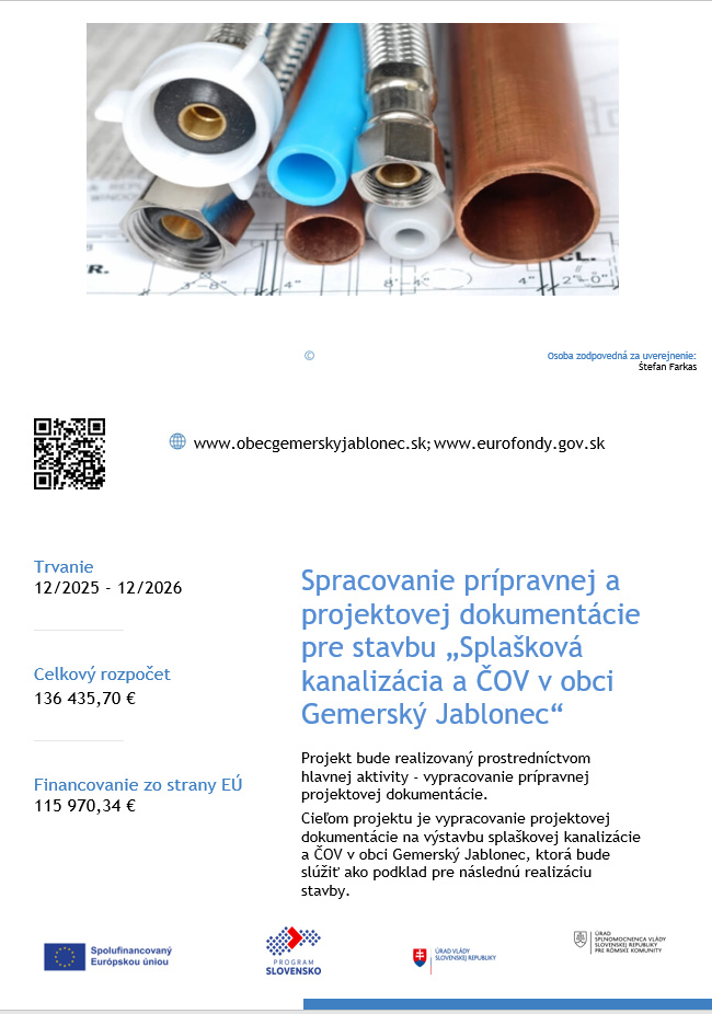 Splašková kanalizácia a ČOV v obci Gemerský Jablonec